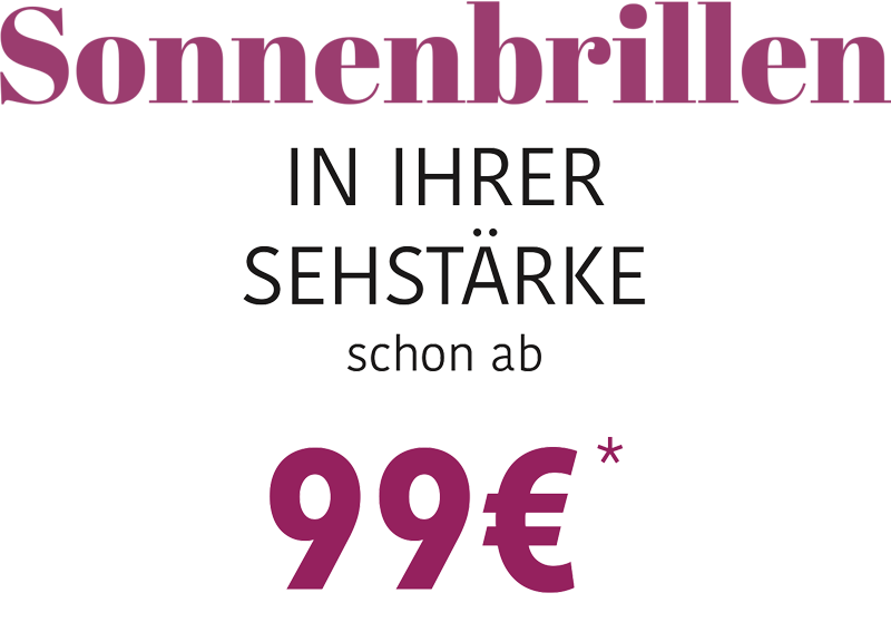 Erleben Sie höchsten Sehkomfort mit einer Sonnenbrille inkl. Gläsern in Ihrer Sehstärke – und das schon ab 99 €*!